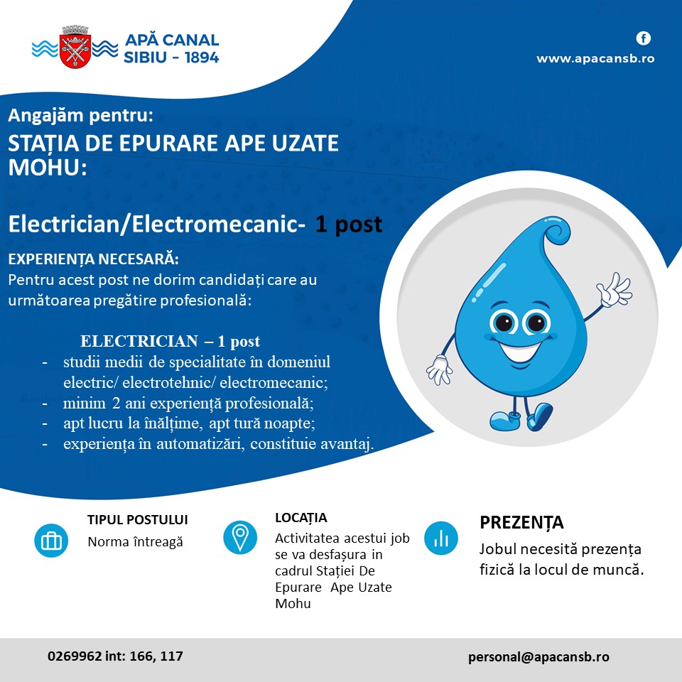 Cererile tip de participare la concurs se completează și se depun online la adresa de email: personal@apacansb.ro sau la sediul societăţii, str. Eschil nr. 6, Serviciul Resurse Umane, împreună cu CV, copie diplomă/acte studii și adeverinţa medicală de la medicul de familie, până la data de 26.05.2025.